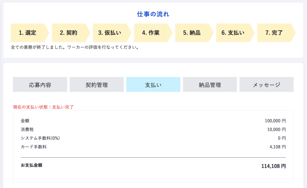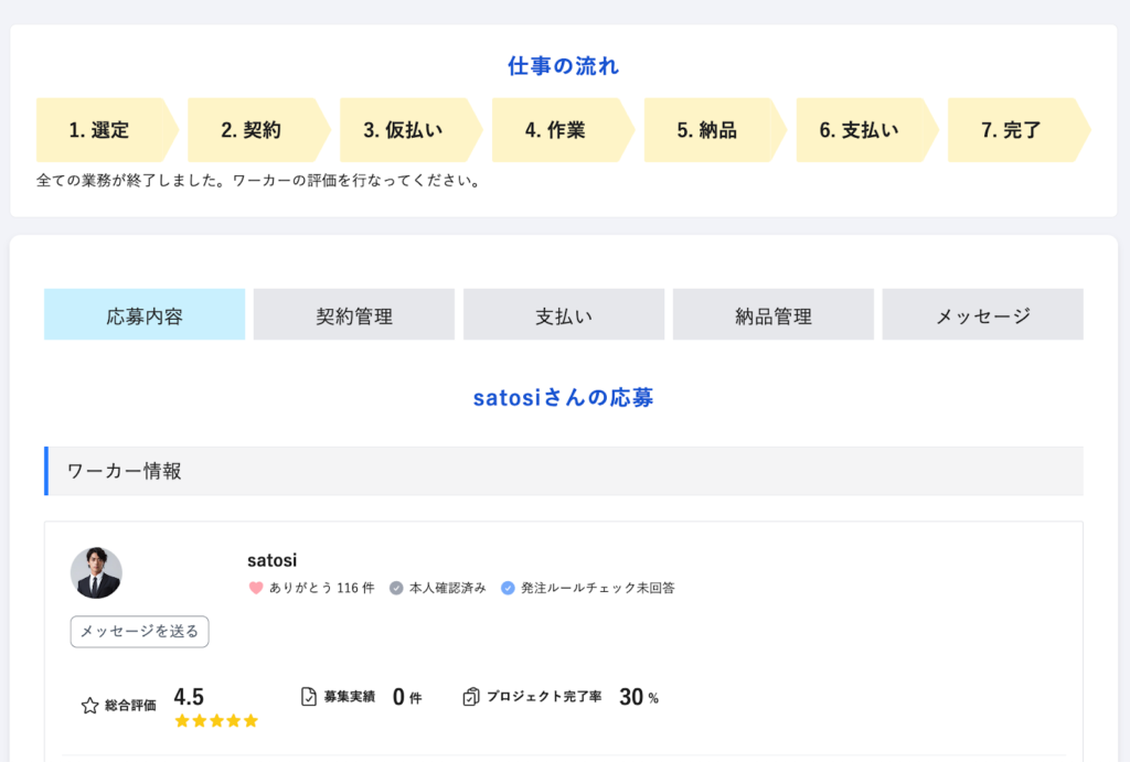 ワーカーさんへ仕事を依頼時の進捗を確認する画面