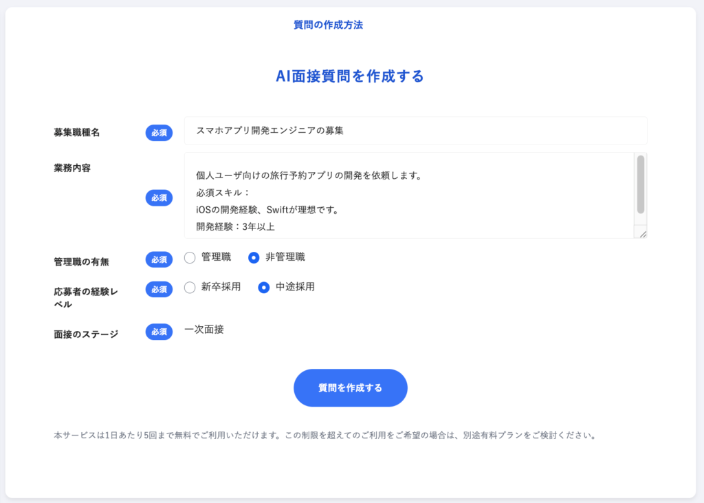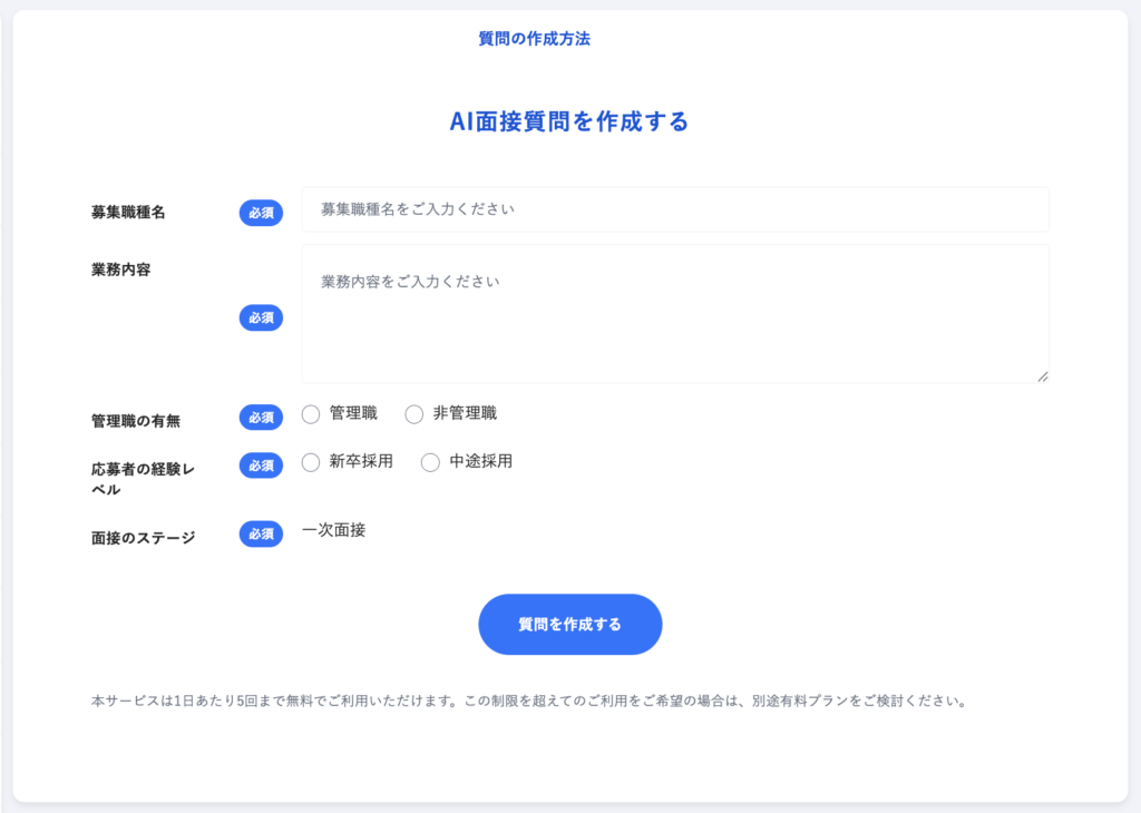 AIが入力条件をもとに、最適な面接質問を自動生成します。
