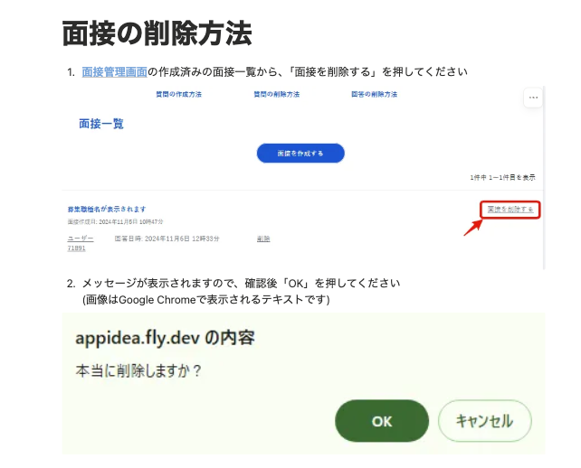 【面接官の管理画面】面接官が作成した面接一覧とワーカーさんからの回答一覧