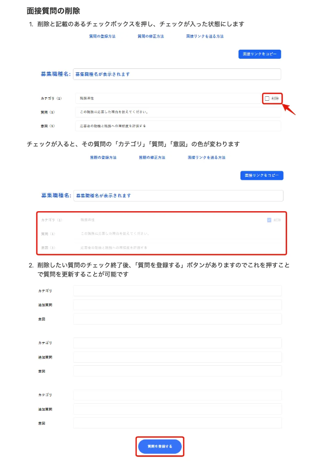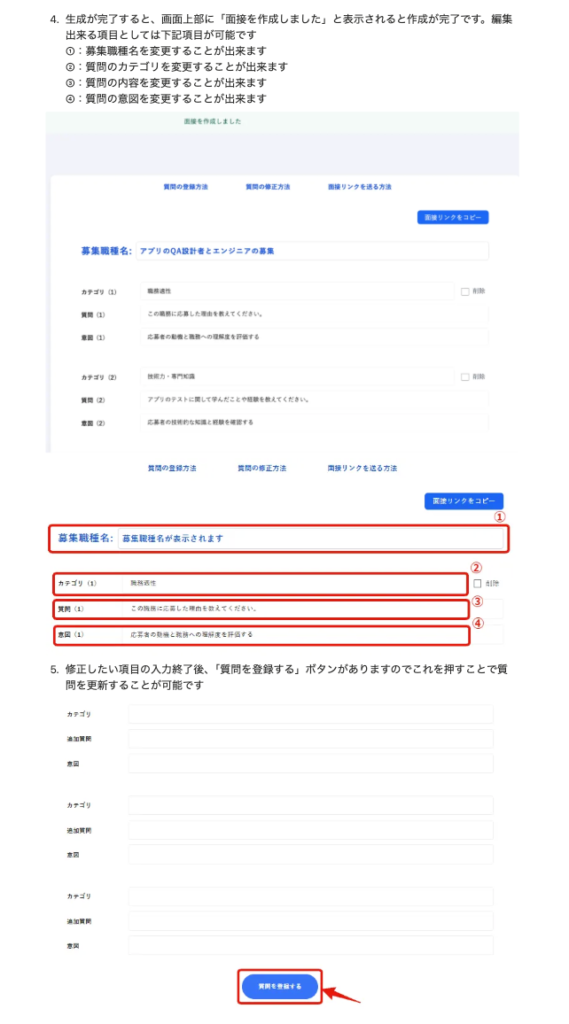 【面接官の管理画面】AIによる面接質問を自動作成する画面