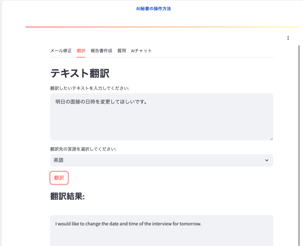 【翻訳機能】文章をビジネスメール向けの文章に修正する機能