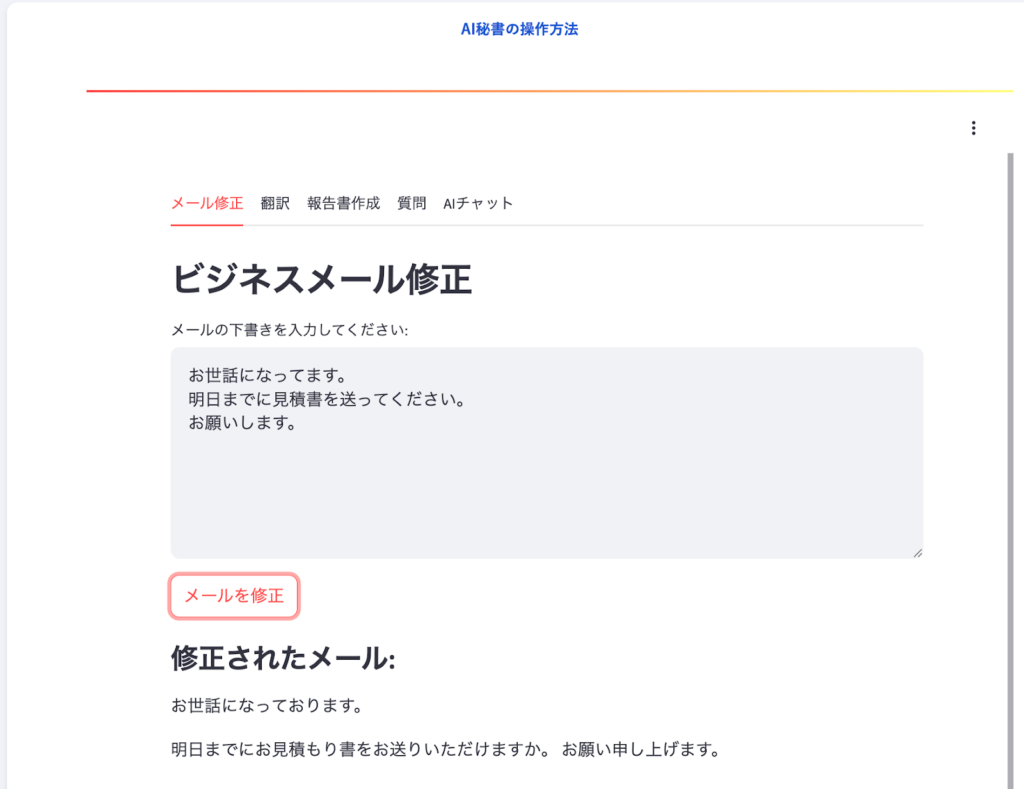 【メール修正機能】文章をビジネスメール向けの文章に修正する機能