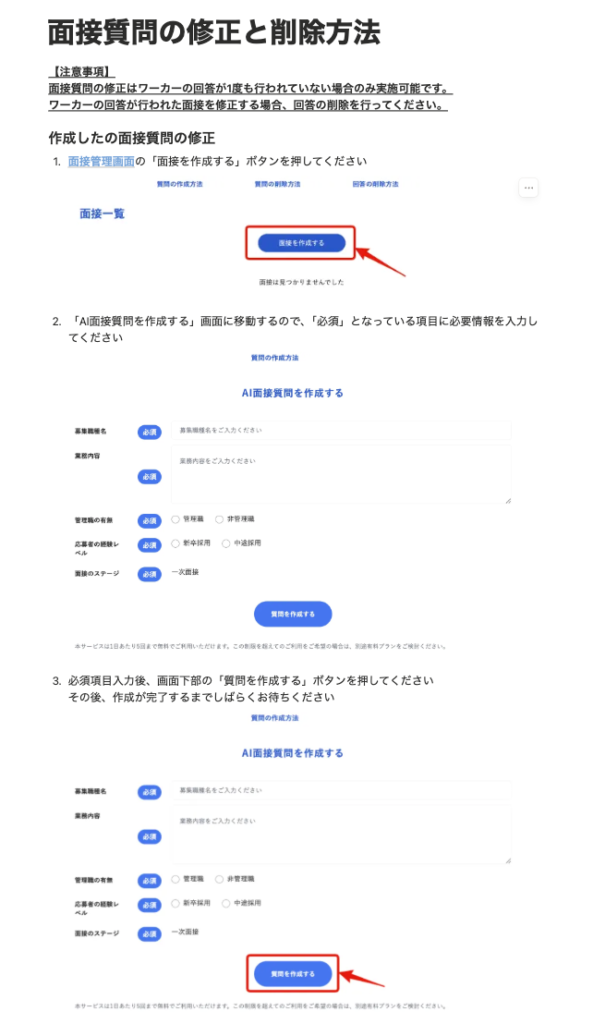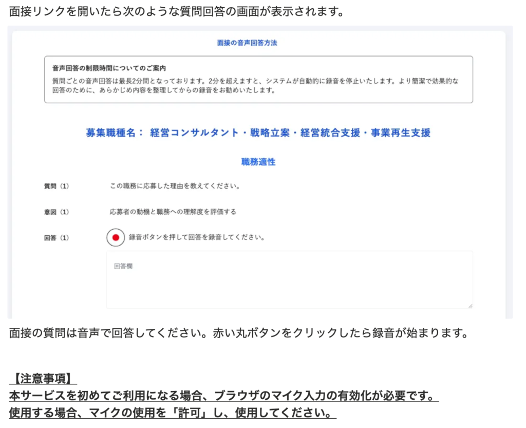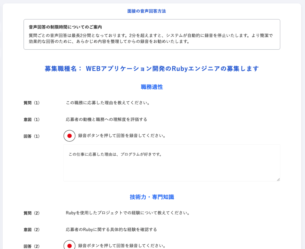 AI面接質問自動作成、音声回答機能