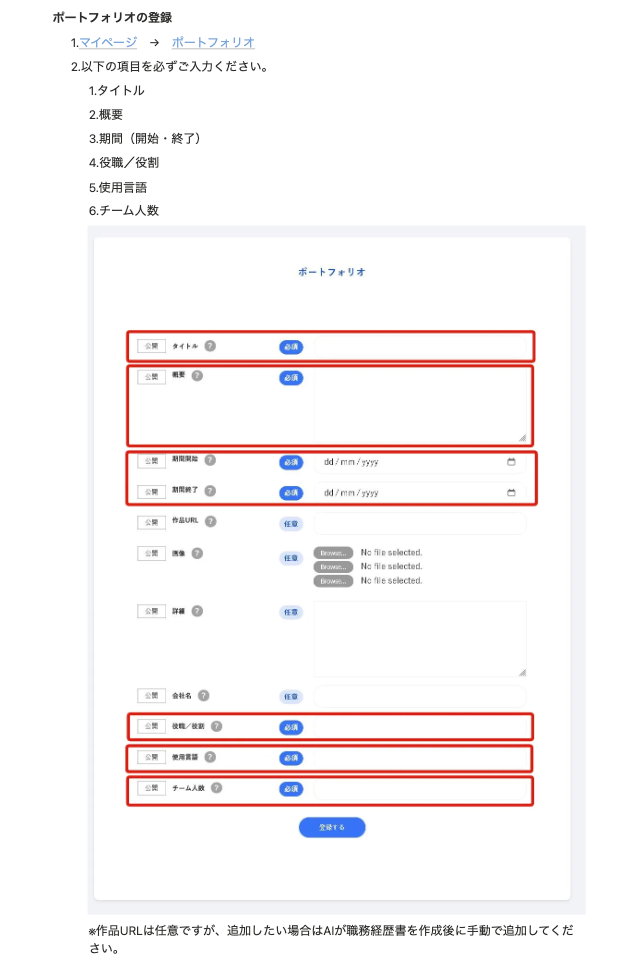 - スキル、ポートフォリオから「職務経歴書のAI自動生成」機能