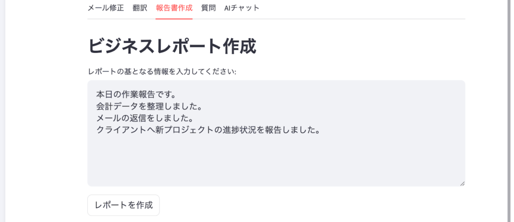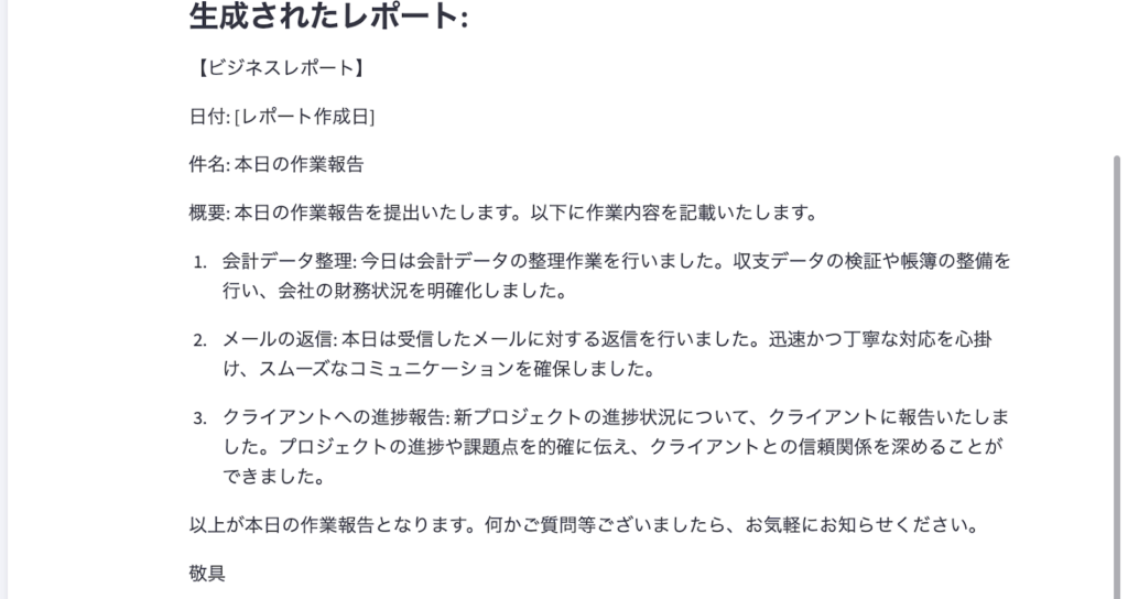 【報告書作成機能】文章をビジネスレポートとして作成する機能