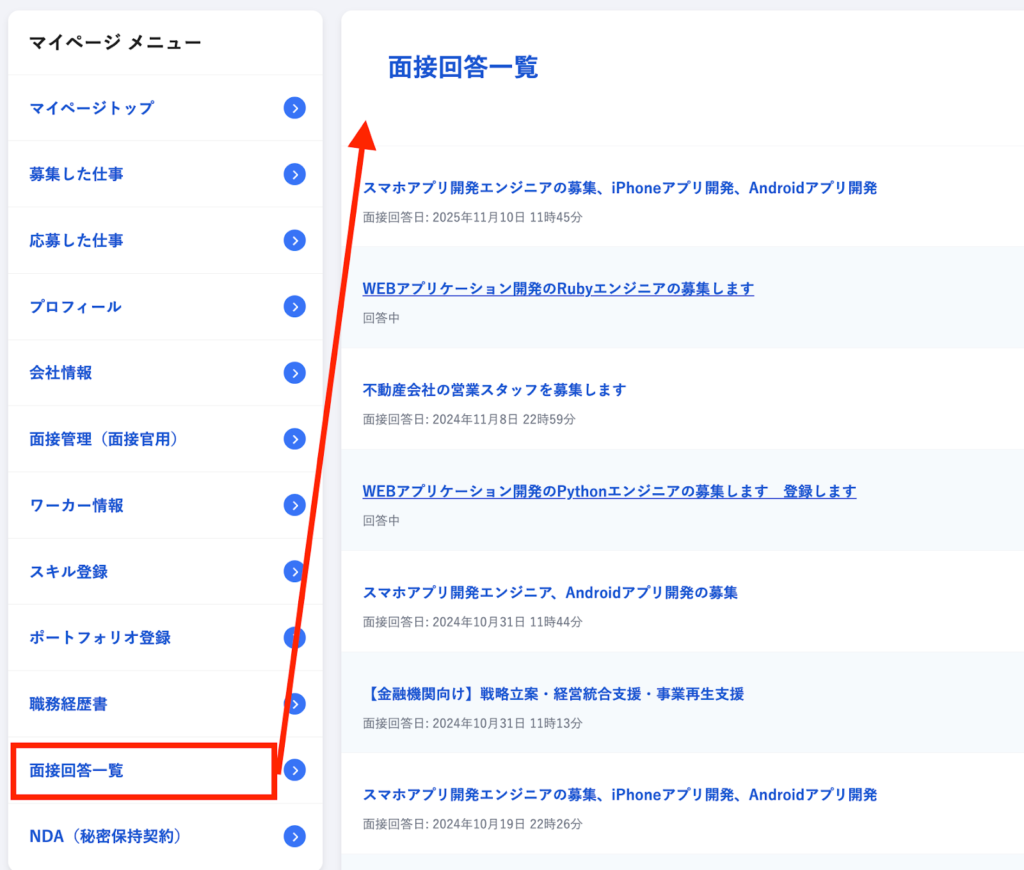 【ワーカーの管理画面】ワーカーさんが回答した面接一覧