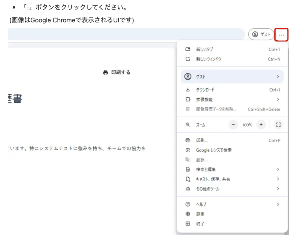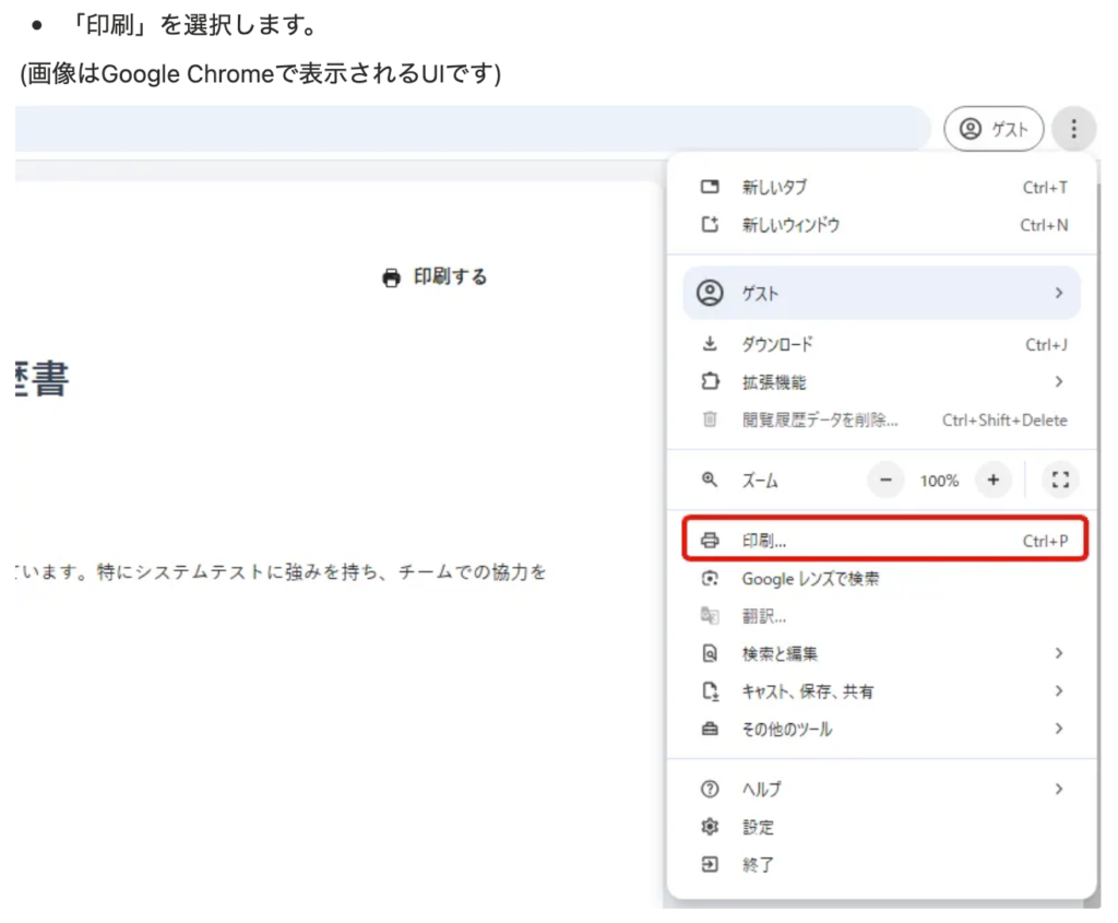 職務経歴書の印刷画面