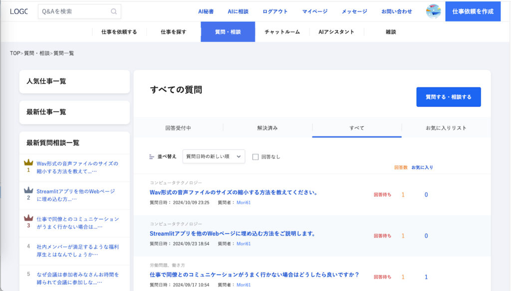 質問・相談の一覧画面