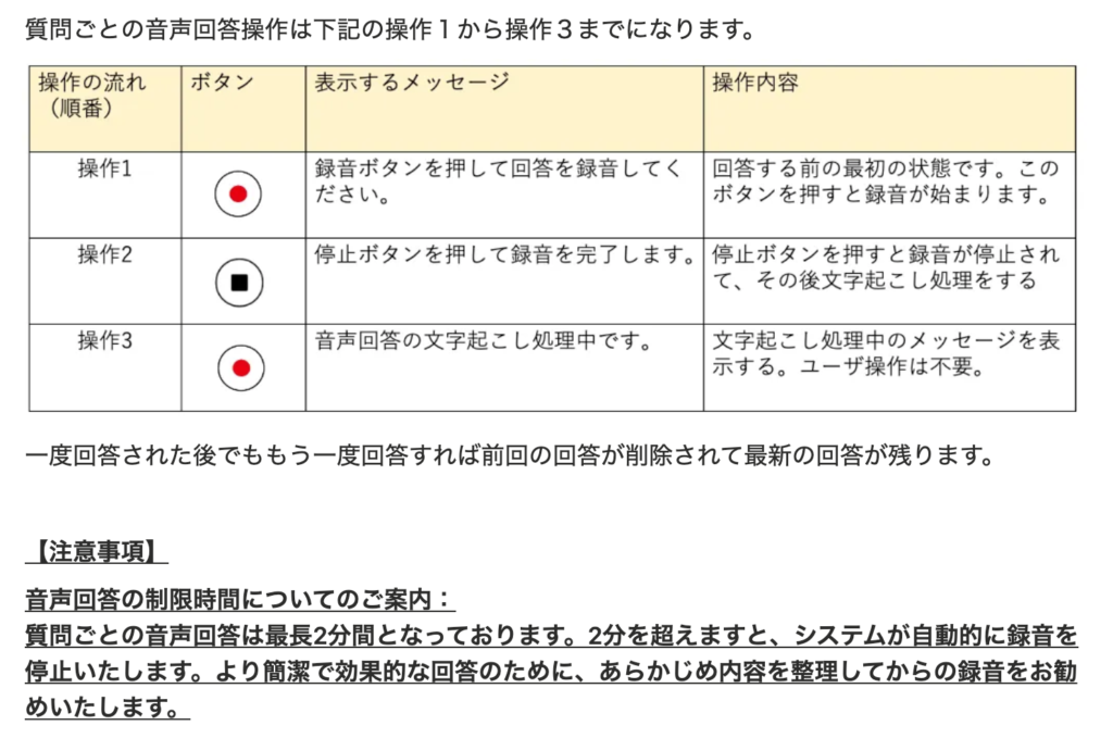 自宅・外出先からPCまたはスマホで音声回答可能。