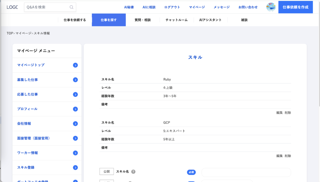ワーカーさんのプロフィール管理