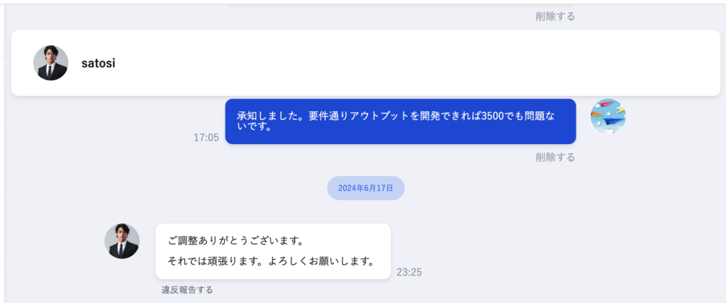 - 発注者と受注者の間で、案件ごとのチャットコミュニケーションが可能